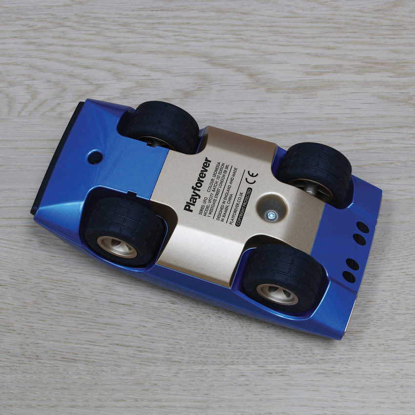 Prepare to embark on a thrilling journey through time and space with UFO Leonessa! Based on 1970's concept cars which were wedges on wheels consisting of all angles and edges! The metallic blue body with champagne gold wheels and detail, give it a striking space age appearance. You could be mistaken for thinking it is straight out of the future. Made from high quality, robust ABS Plastic with a high gloss UV coating which has been hand-polished with care, it has a flawless finish that is sure to impress lovers of popular culture and futuristic design. Play it or display it - you decide!